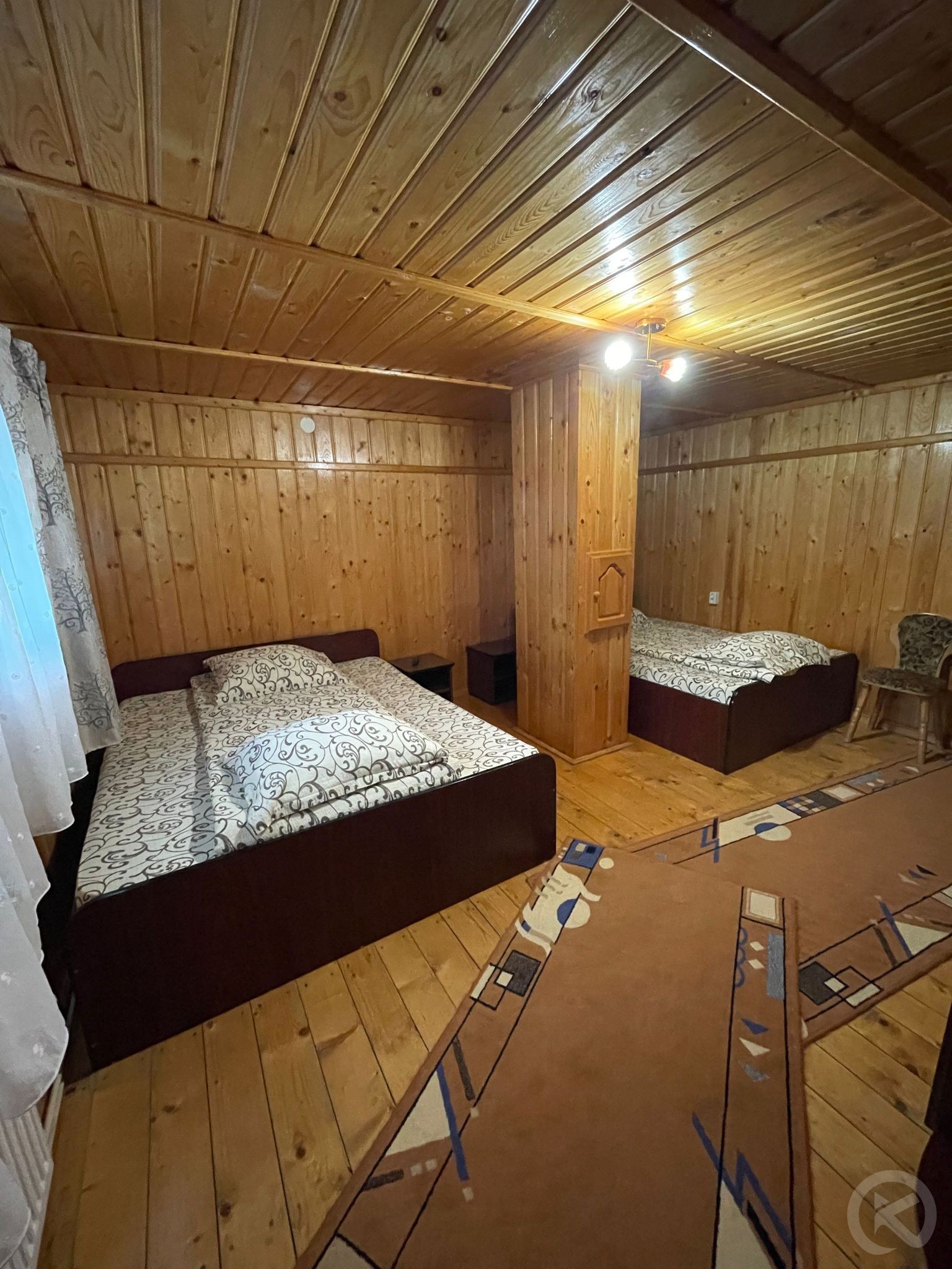 La Cabana Med 1, veți găsi o cameră cu două paturi duble și baie proprie, ideală pentru familii sau grupuri de prieteni. De asemenea, există o cameră cu un pat dublu și baie proprie, perfectă pentru cupluri. În plus, cabana dispune de patru camere cu pat dublu, care beneficiază de trei băi comune, oferind tot confortul necesar pentru un sejur relaxant.