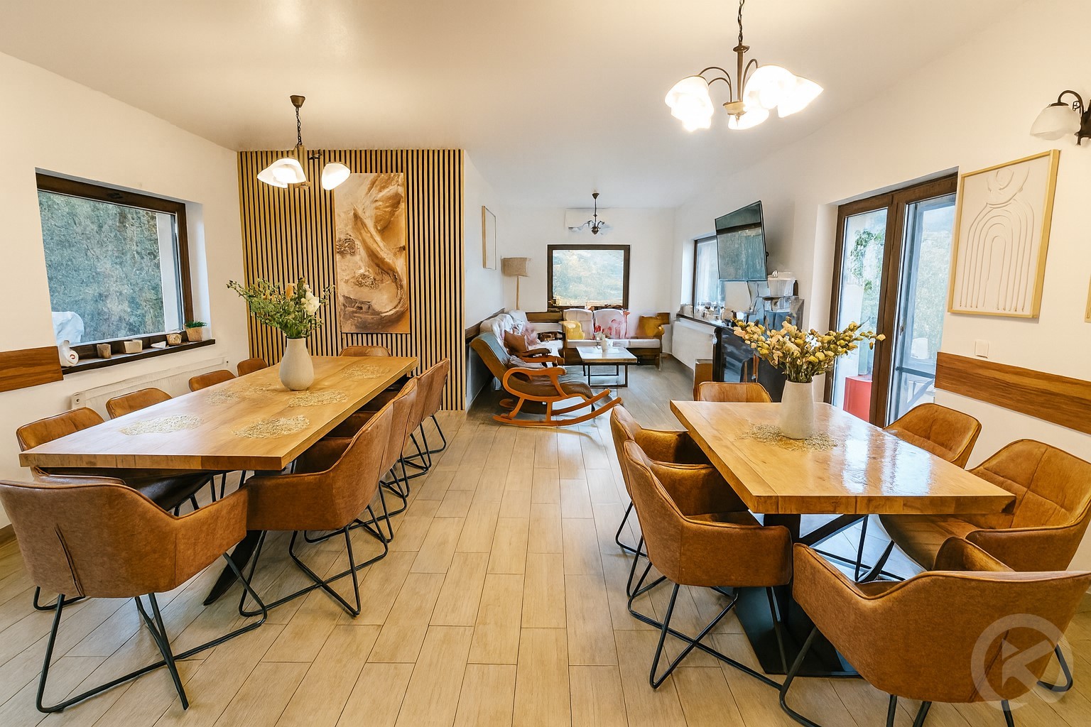 Socializare: Livingul generos și spațiul pentru foc de tabără din curte sunt locurile ideale pentru jocuri de societate, povești la gura focului și consolidarea legăturilor cu cei dragi.